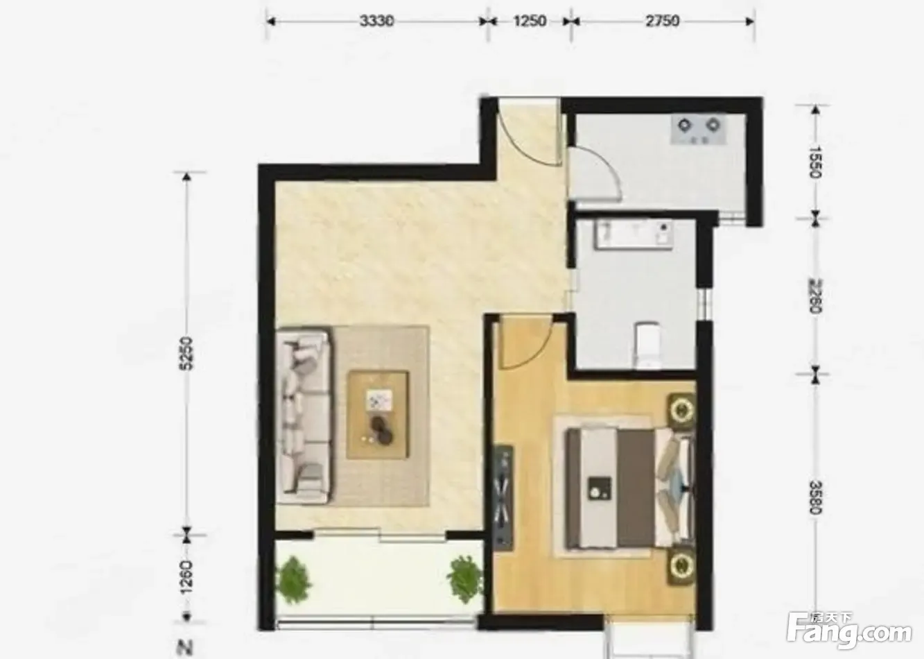 1室2厅1卫