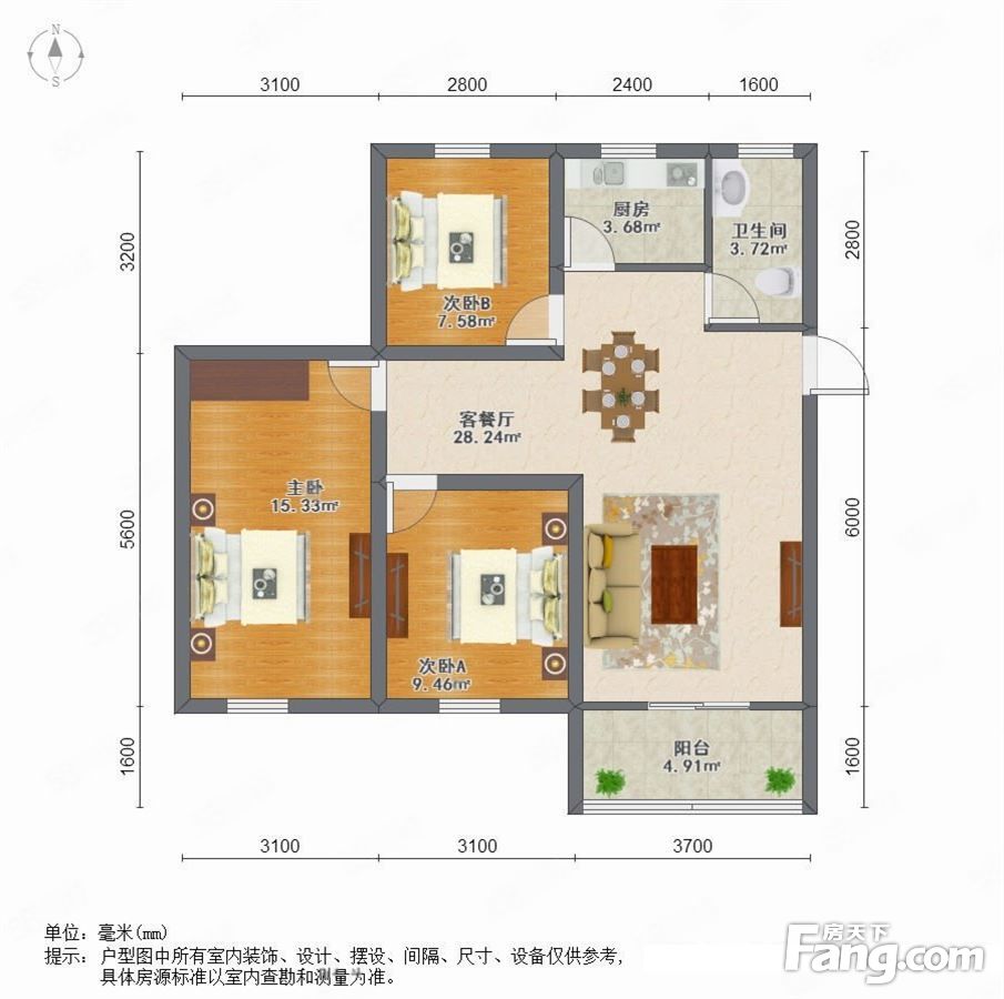 户型齐全,主打户型方正,独立衣帽间,明卫,明厨,双卧朝南,主卧朝南三居