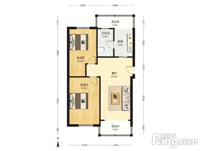户型齐全,主打户型方正,明厨,明卫,客厅朝南,全明格局,主卧朝南二居