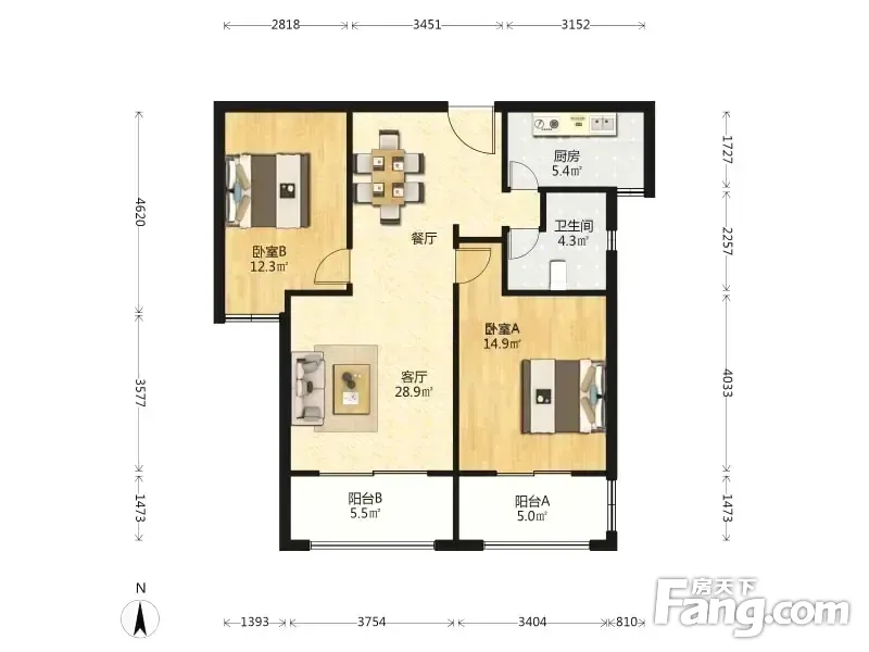 户型齐全,主打户型方正,明厨,明卫,客厅朝南,双阳台二居