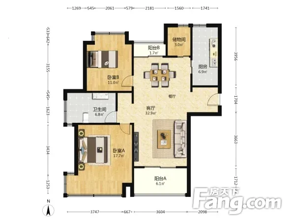 兰香湖畔紫竹半岛花园经典2+1户型 客餐厅开阔居住舒适