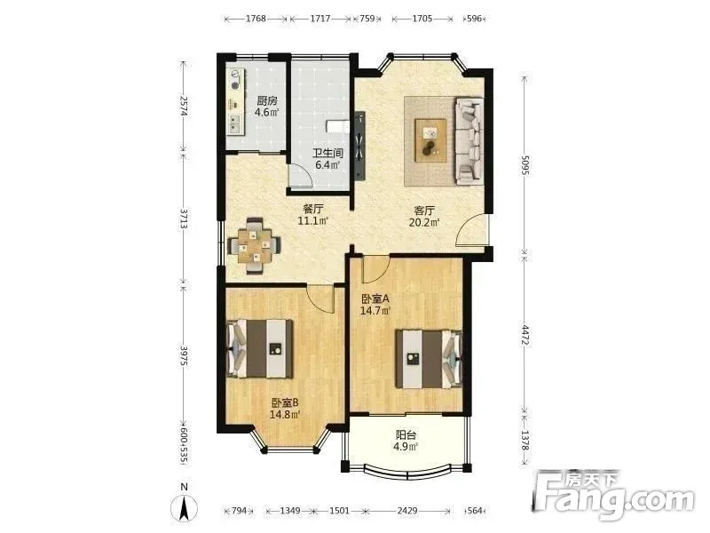 富仕名邸 2室1厅 88.1平