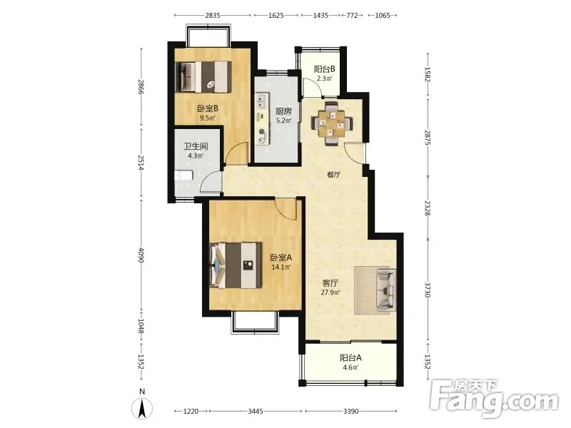 城市庭园 2室1厅 93.46平