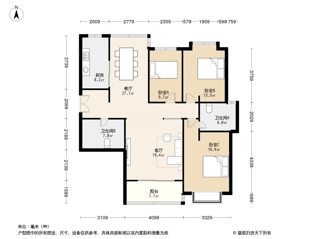 户型齐全,主打户型方正,明厨,明卫,主卧朝南三居