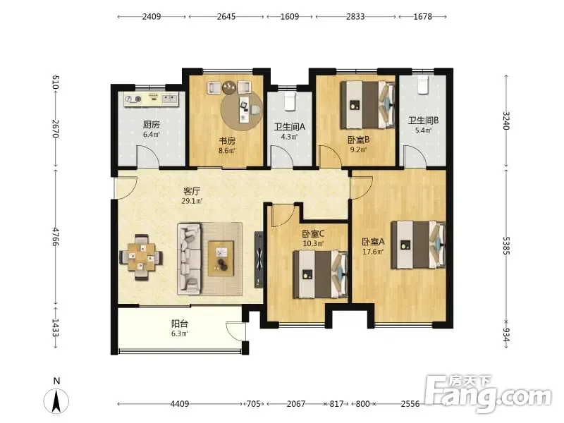房屋拥有相对宽松的尺寸,布局通透,动静分离,设计豪华