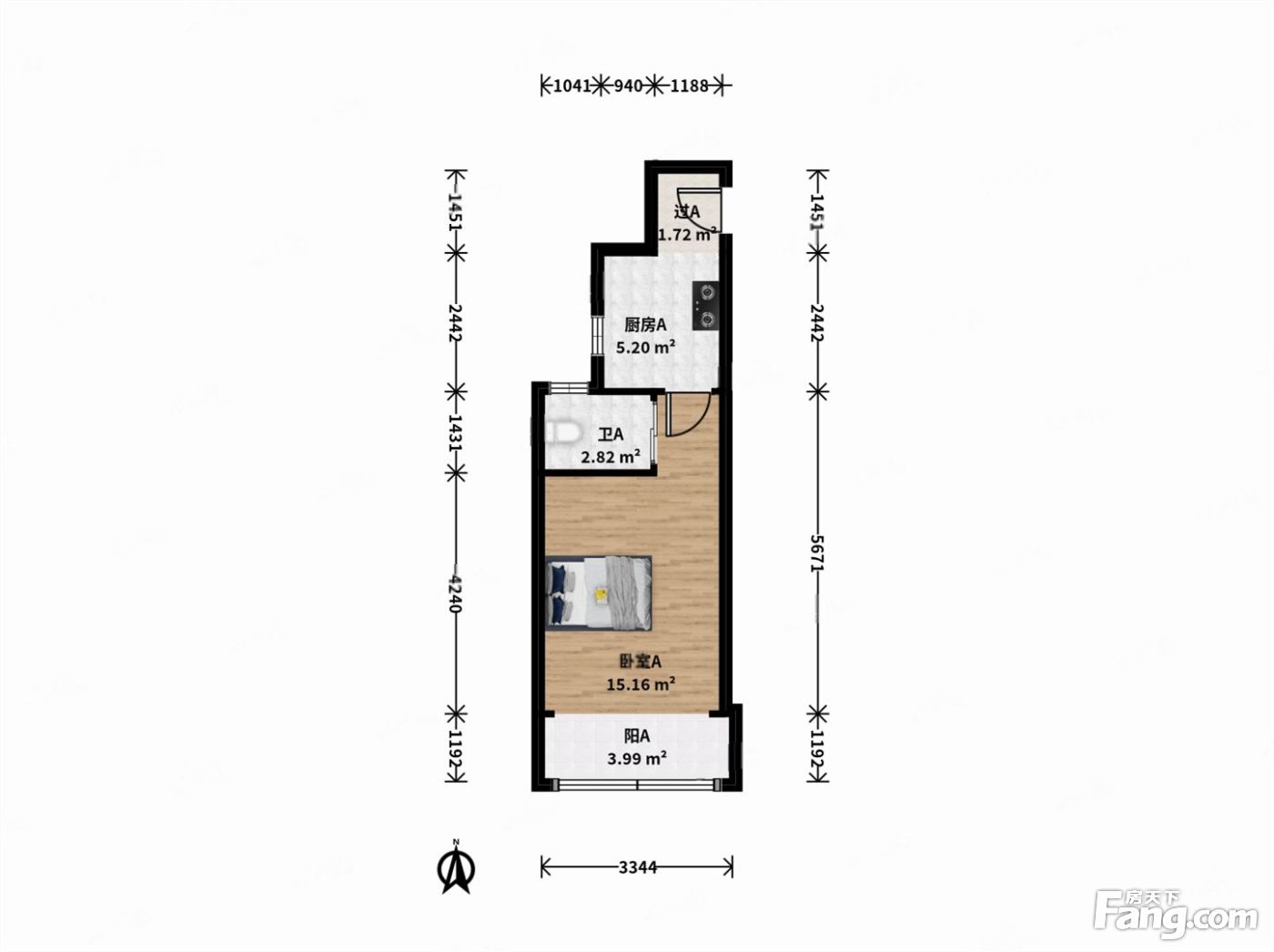 户型齐全,主打户型方正,明卫,明厨,客厅朝南,全明格局一居