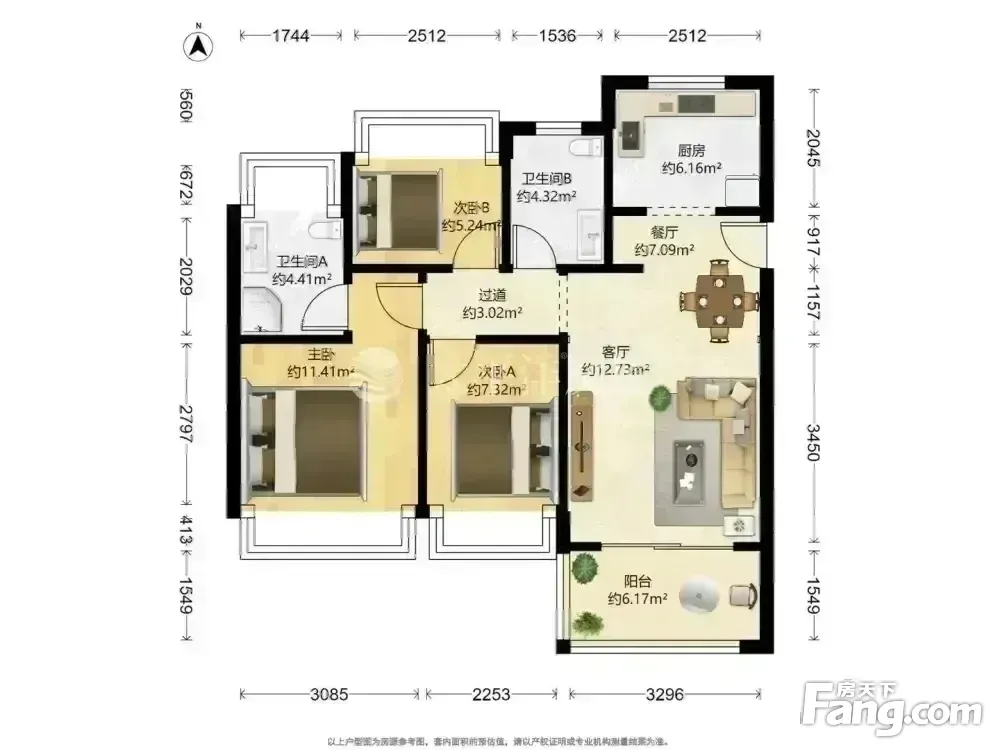 户型齐全,主打南北通透,户型方正三居