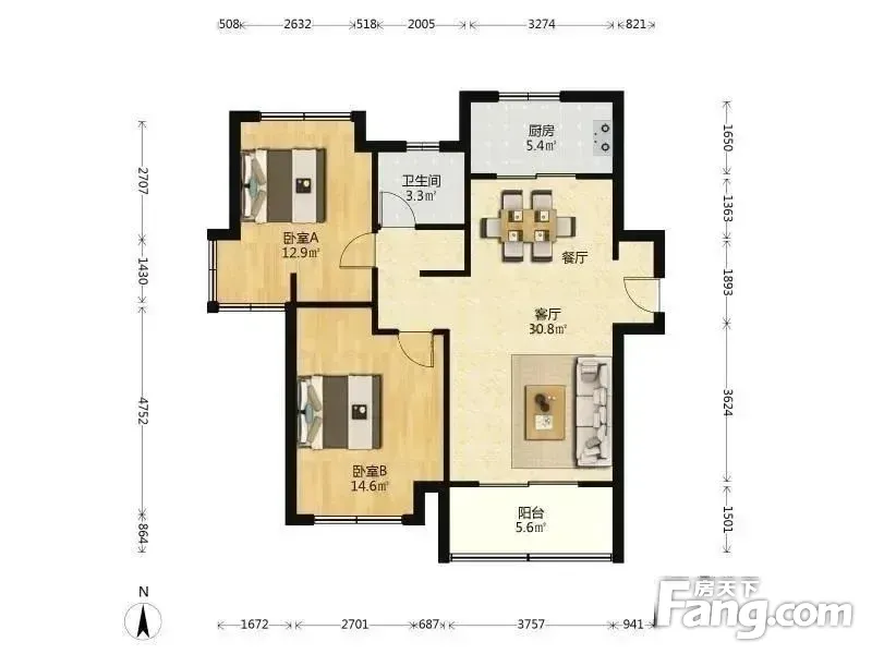 户型齐全,主打户型方正,明卫,明厨,主卧朝南二居