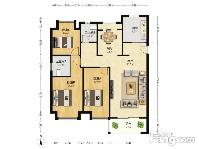 户型齐全,主打南北通透,全明格局三居