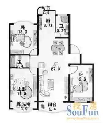 房屋拥有相对宽松的尺寸,布局通透,动静分离,设计豪华