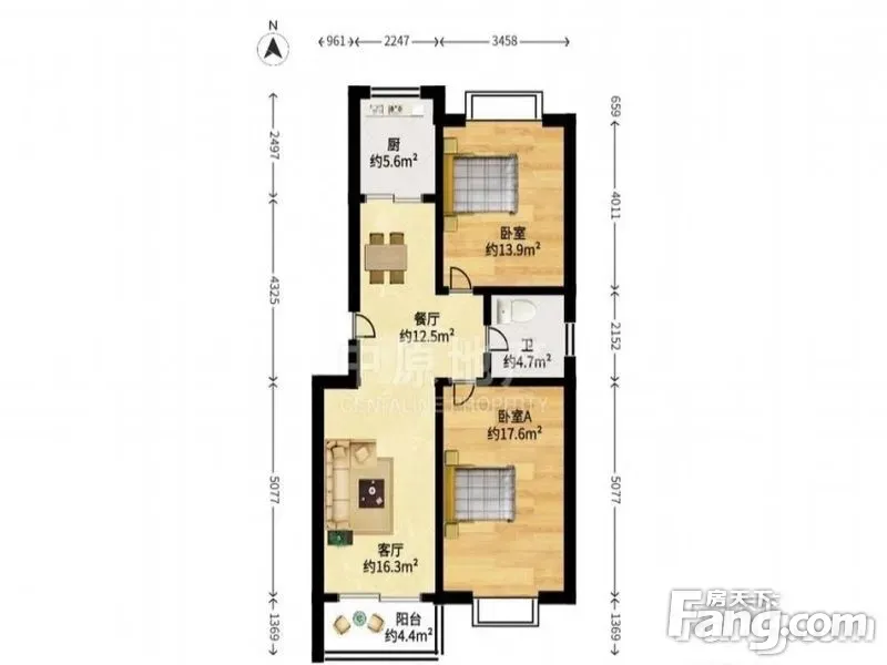 聚航苑 89平2居 南向简装修