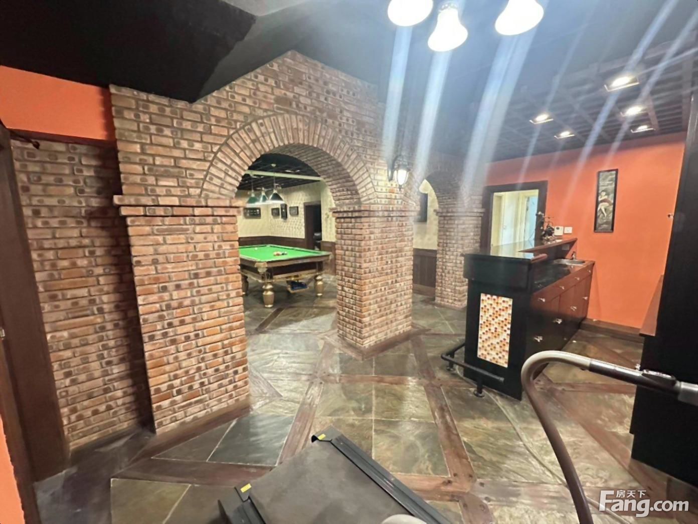 此房为地上二层地下一层,入户2个客厅及餐厅,厨房独立带个餐厅通往露台通往花园,一个客卫生间旁边是保姆房,旁边有个储藏间及卫生间,旁边有个门通往花园,车库可以停车2部,外面一部,2楼,2个朝南房间一个主卧一个大卧室客厅连接书房,朝北2个房间一个套房,客厅放台球,旁边吧台,健身设备,影视厅一个,桑拿房一个洗衣服一个,卫生间一个,