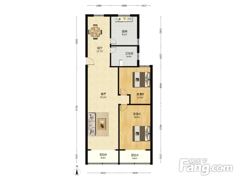 户型齐全,主打户型方正,明厨,明卫,客厅朝南,双阳台二居