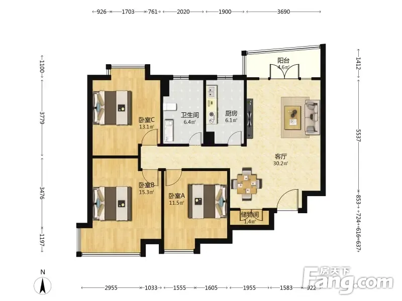 精文城上城 3室1厅 113.05平