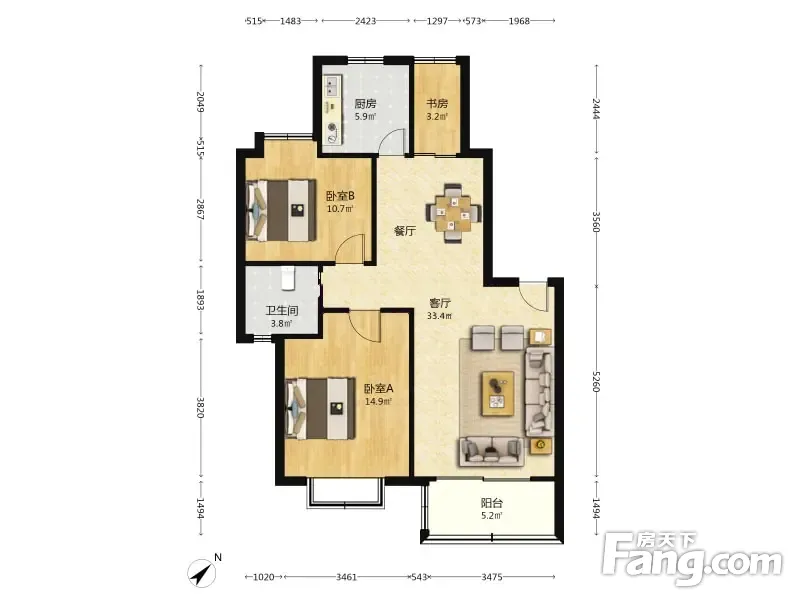 户型齐全,主打户型方正,明厨,明卫,双阳台,双卧朝南三居