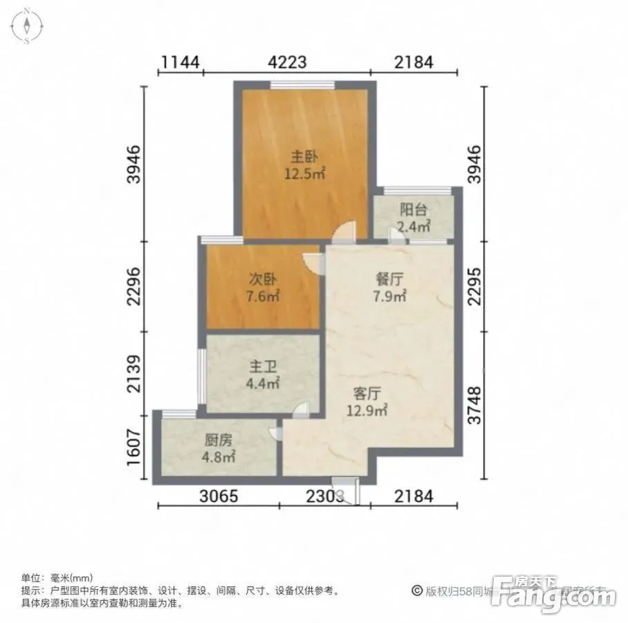 户型齐全,主打户型方正,明卫,客厅朝南,主卧朝南二居