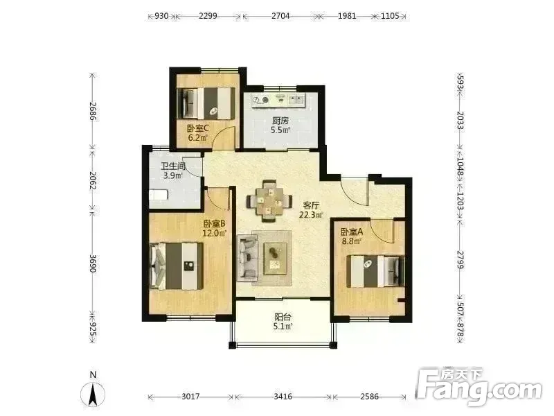 3室2厅1卫