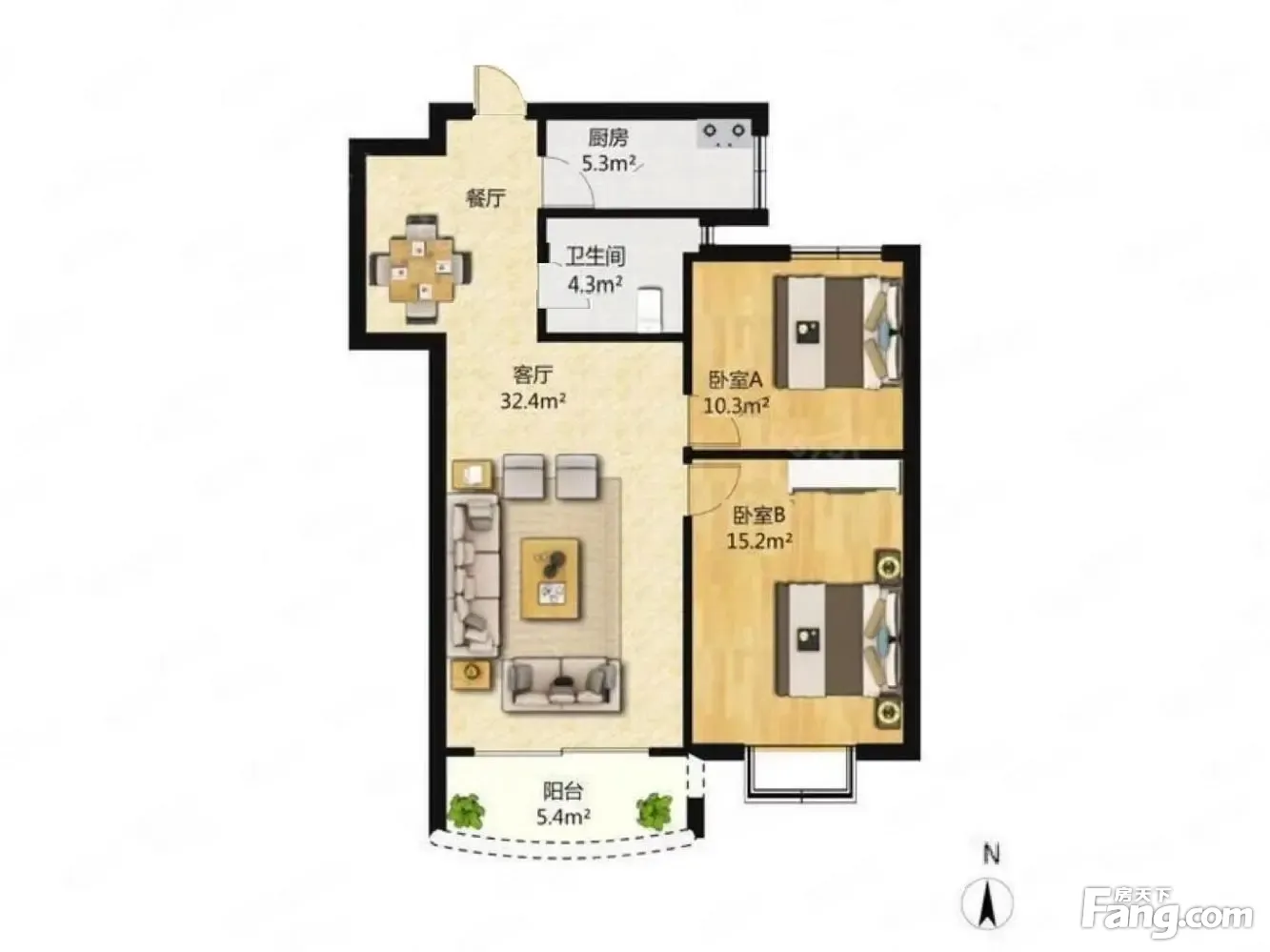 户型齐全,主打户型方正,明厨,主卧朝南二居