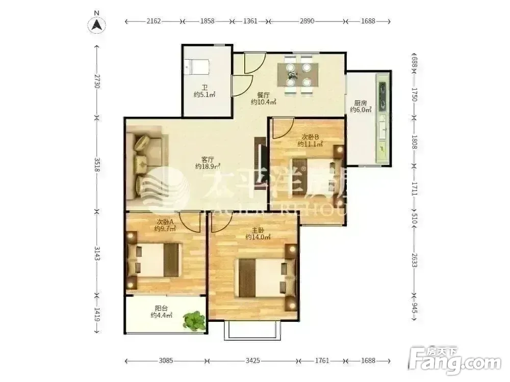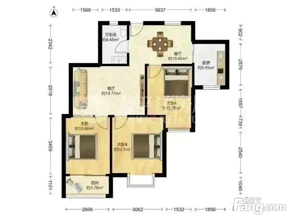 户型齐全,主打明厨,明卫,主卧朝南三居