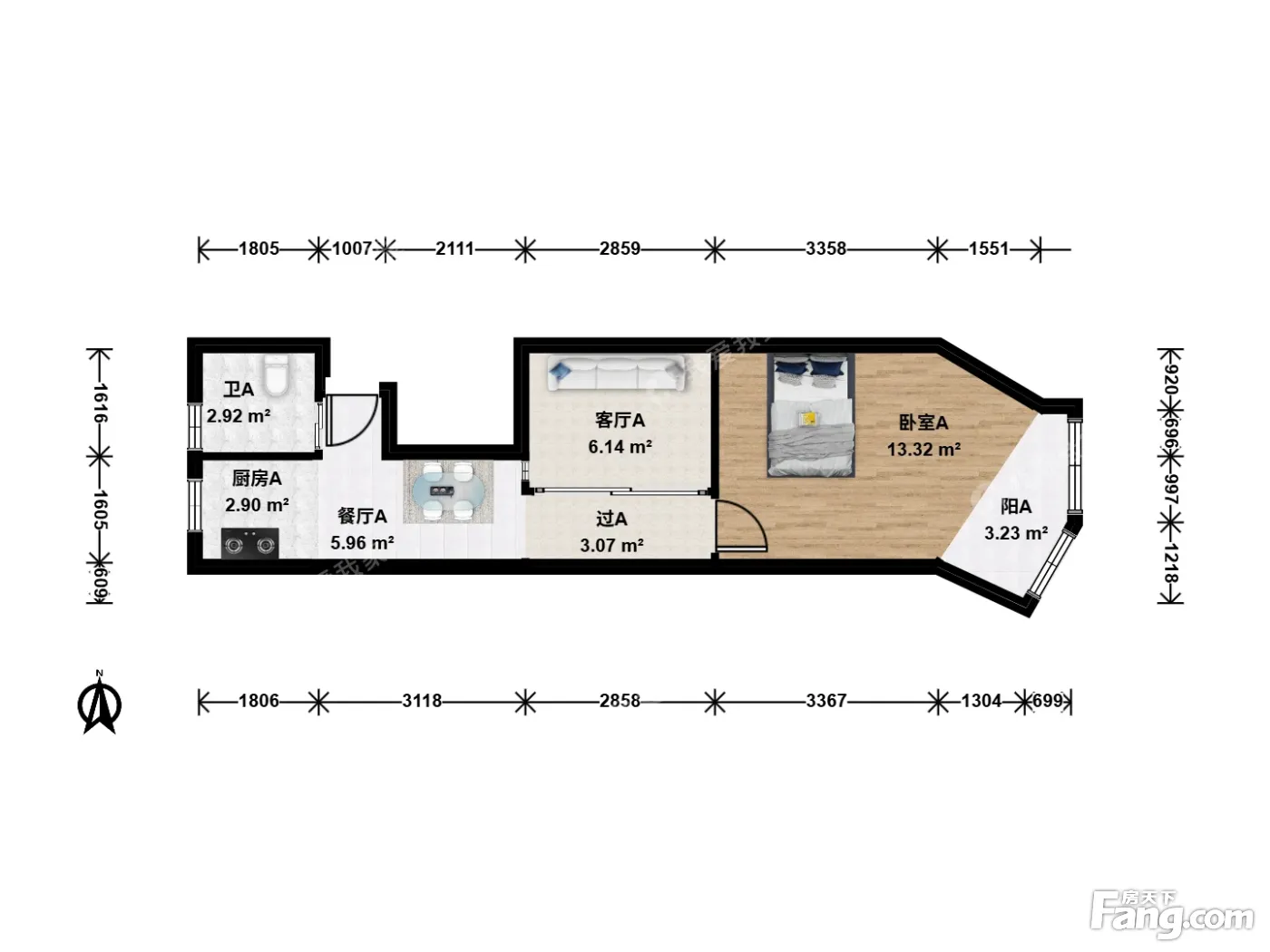 1室2厅1卫