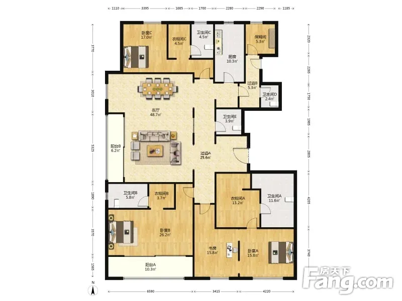 房屋拥有相对宽松的尺寸,布局通透,动静分离,设计豪华