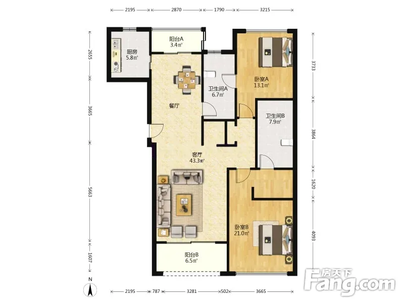 户型齐全,主打独立衣帽间,明厨,明卫,客厅朝南三居
