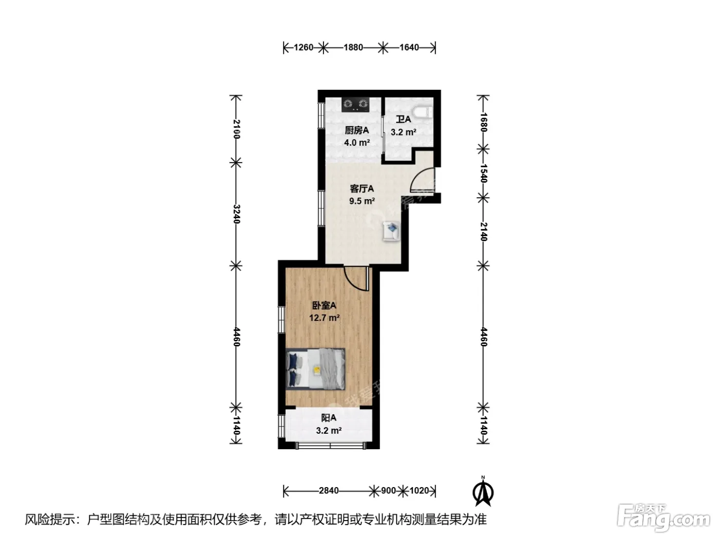 户型介绍:此房户型为1室1厅1卫,建筑面积为42.29平米,朝向为南。