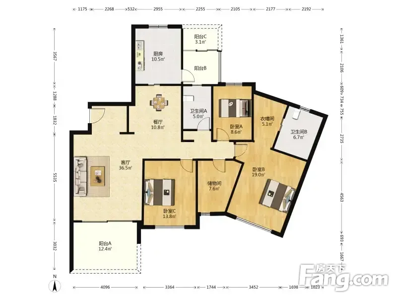 仁恒河滨花园 3室2厅 184.58平