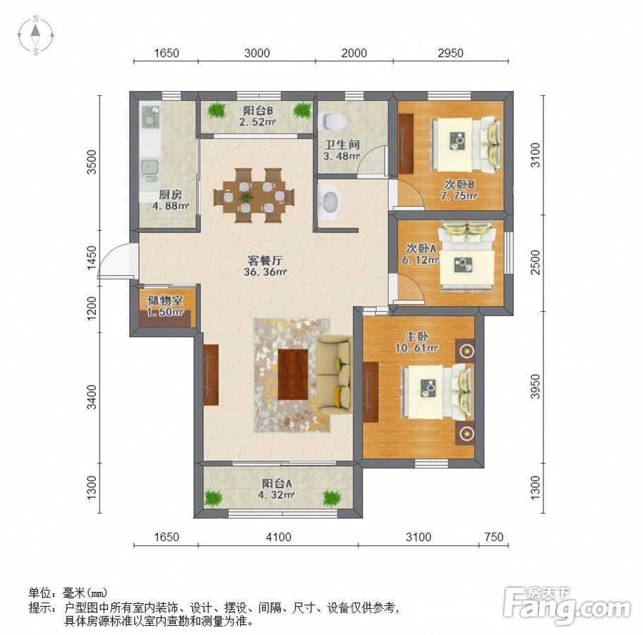 户型齐全,主打户型方正,明卫,明厨,双阳台,主卧朝南三居
