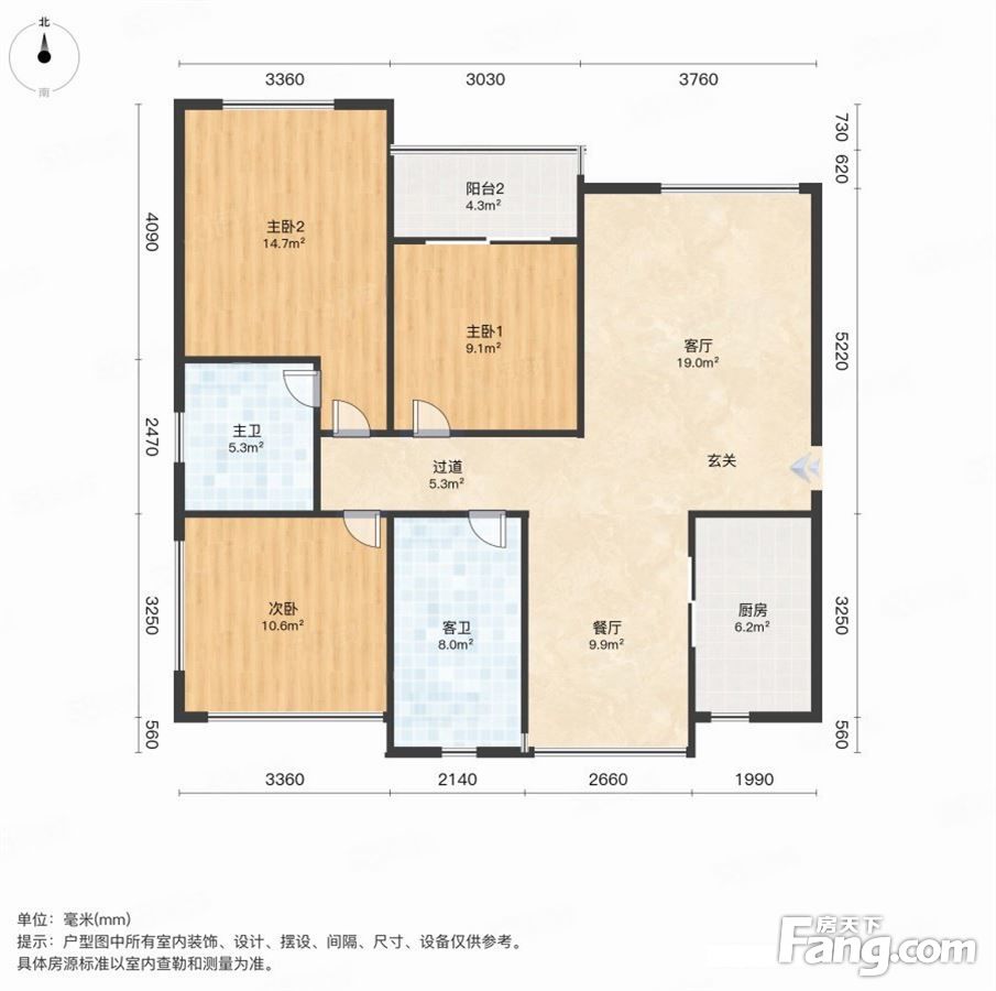 户型齐全,主打明厨,明卫,客厅朝南,全明格局,双卧朝南三居