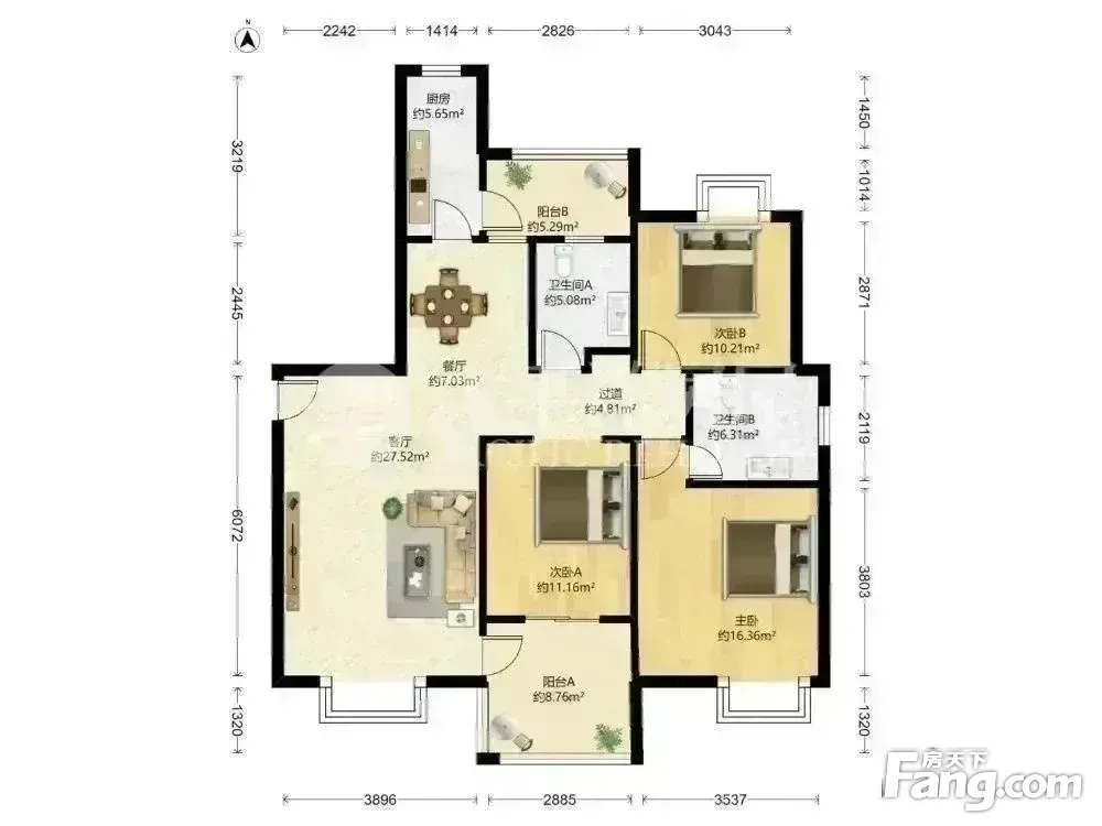 户型齐全,主打户型方正,明厨,明卫,主卧朝南三居