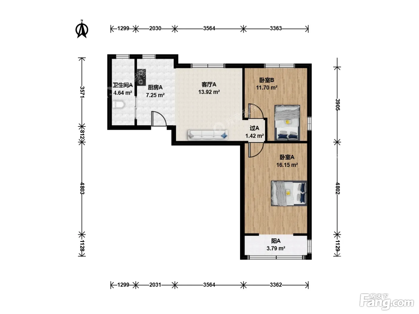 户型齐全,主打户型方正,明卫,明厨,客厅朝南二居