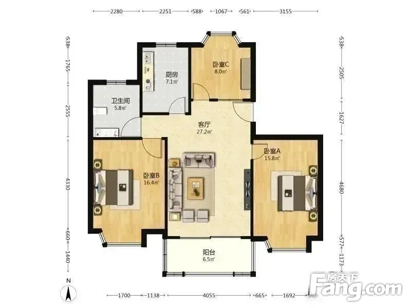 金铭福邸 3室1厅 110.91平