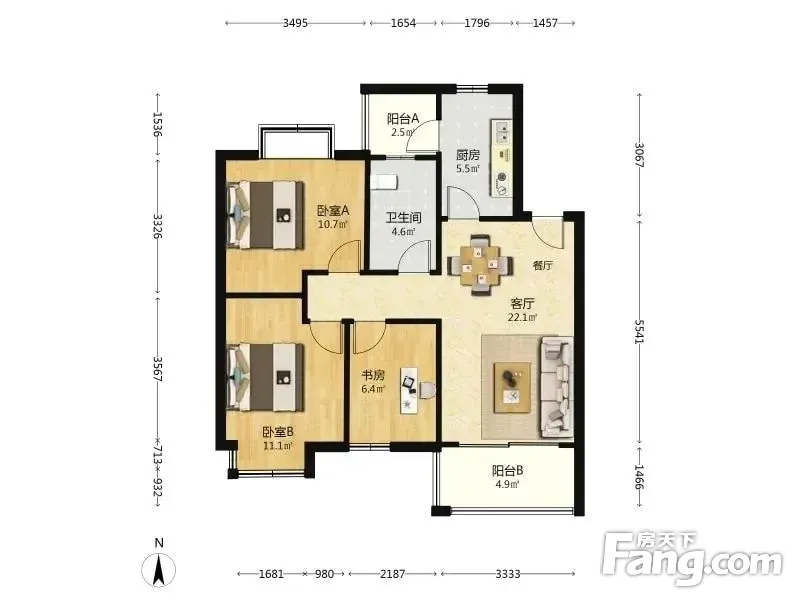 户型齐全,主打全明格局,户型方正,客厅朝南,主卧朝南三居