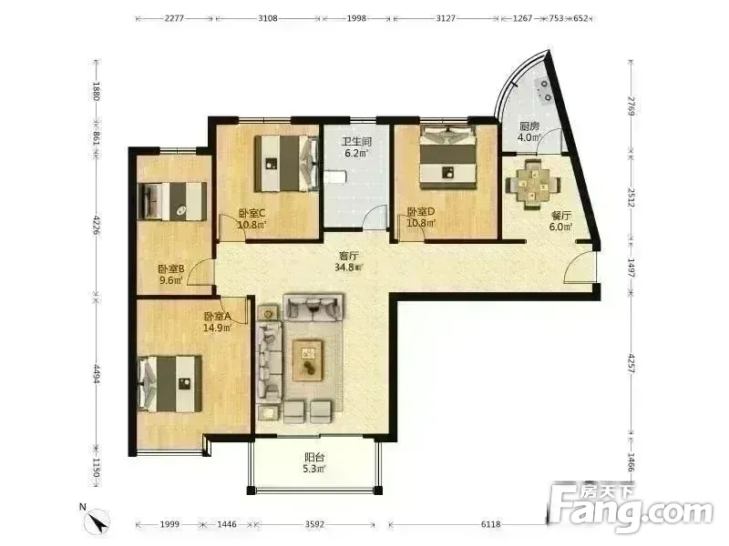 房屋拥有相对宽松的尺寸,布局通透,动静分离,设计合理,没有浪费空间.可以根据自己要求从新改造 。