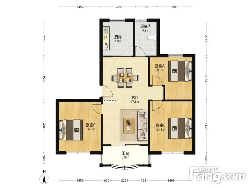 3室2厅1卫
