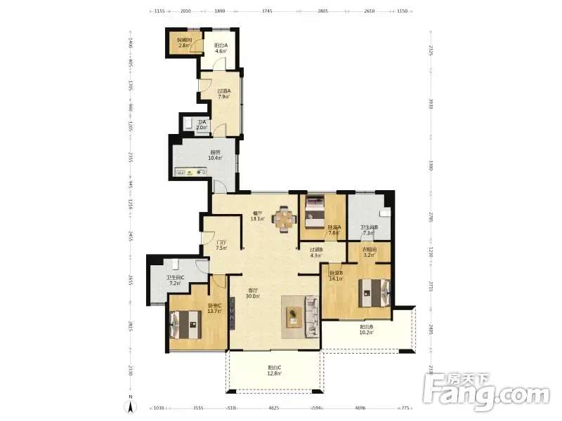 户型齐全,主打明厨,独立衣帽间,明卫,双阳台四居