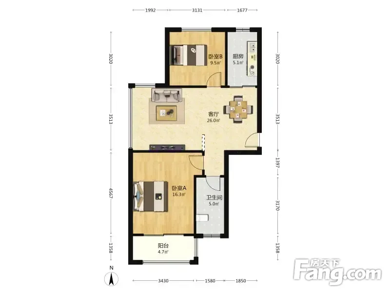 户型齐全,主打户型方正,明卫,明厨,主卧朝南二居