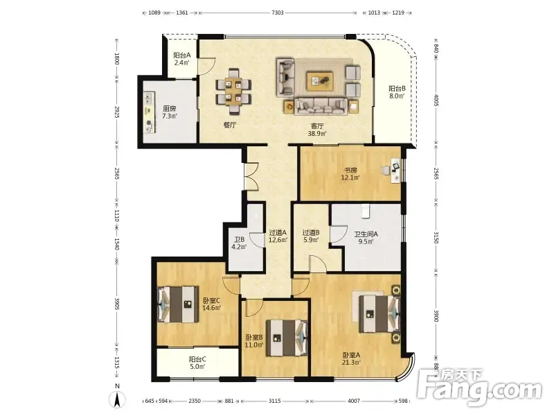 房屋拥有相对宽松的尺寸,布局通透,动静分离,设计豪华