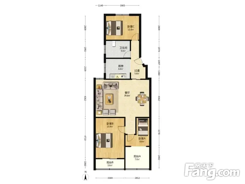 凯诚公寓 3室2厅 112.53平