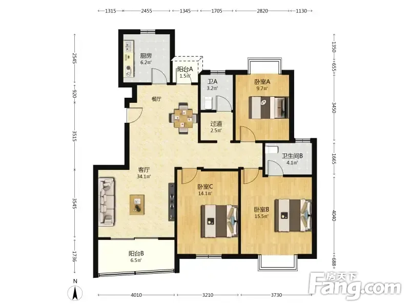 户型齐全,主打户型方正,明卫,明厨,主卧朝南三居