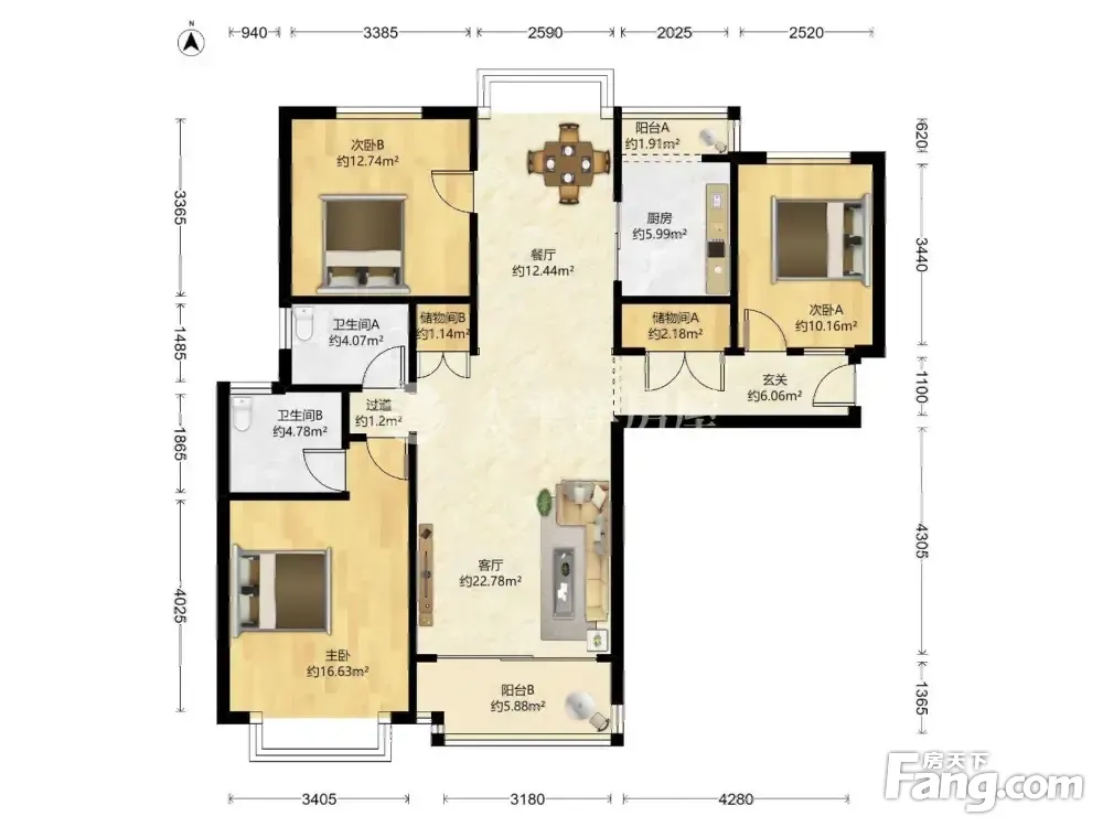 户型齐全,主打户型方正,明卫,双卧朝南,主卧朝南三居