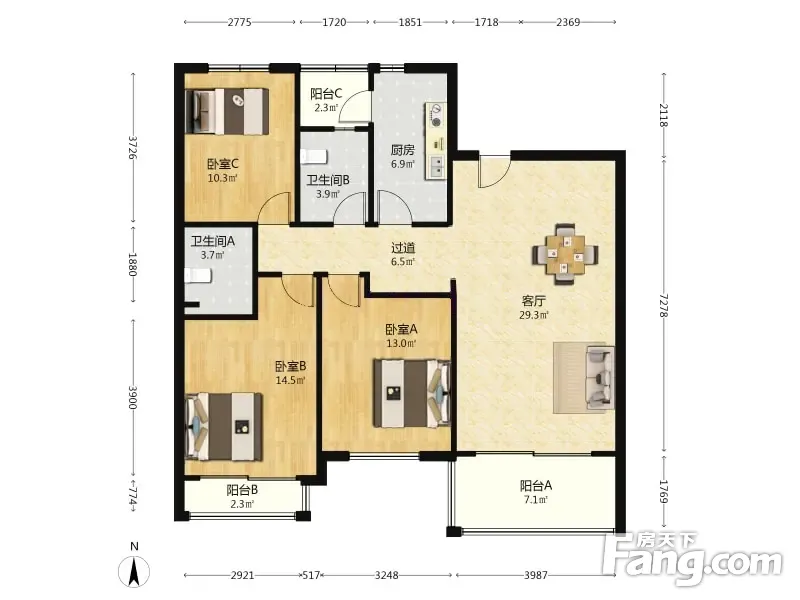 3室1厅2卫