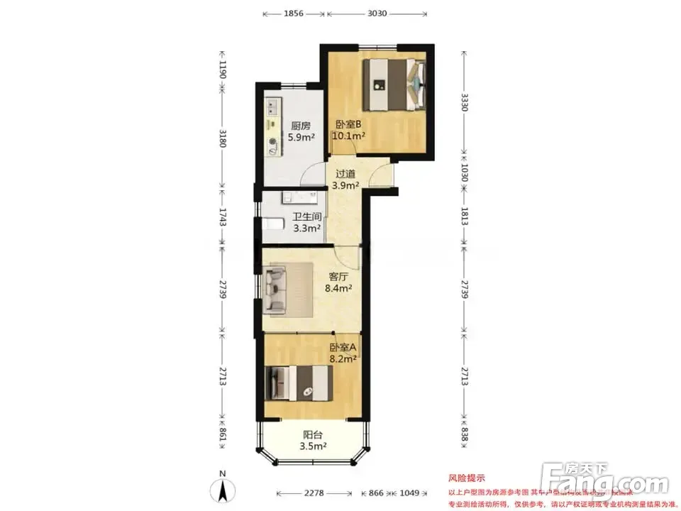 金梅园 55平 边套南北两房一厅 全明户型 采光无遮挡