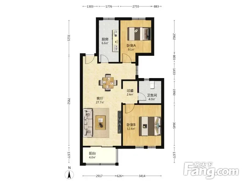 户型齐全,主打南北通透,户型方正二居