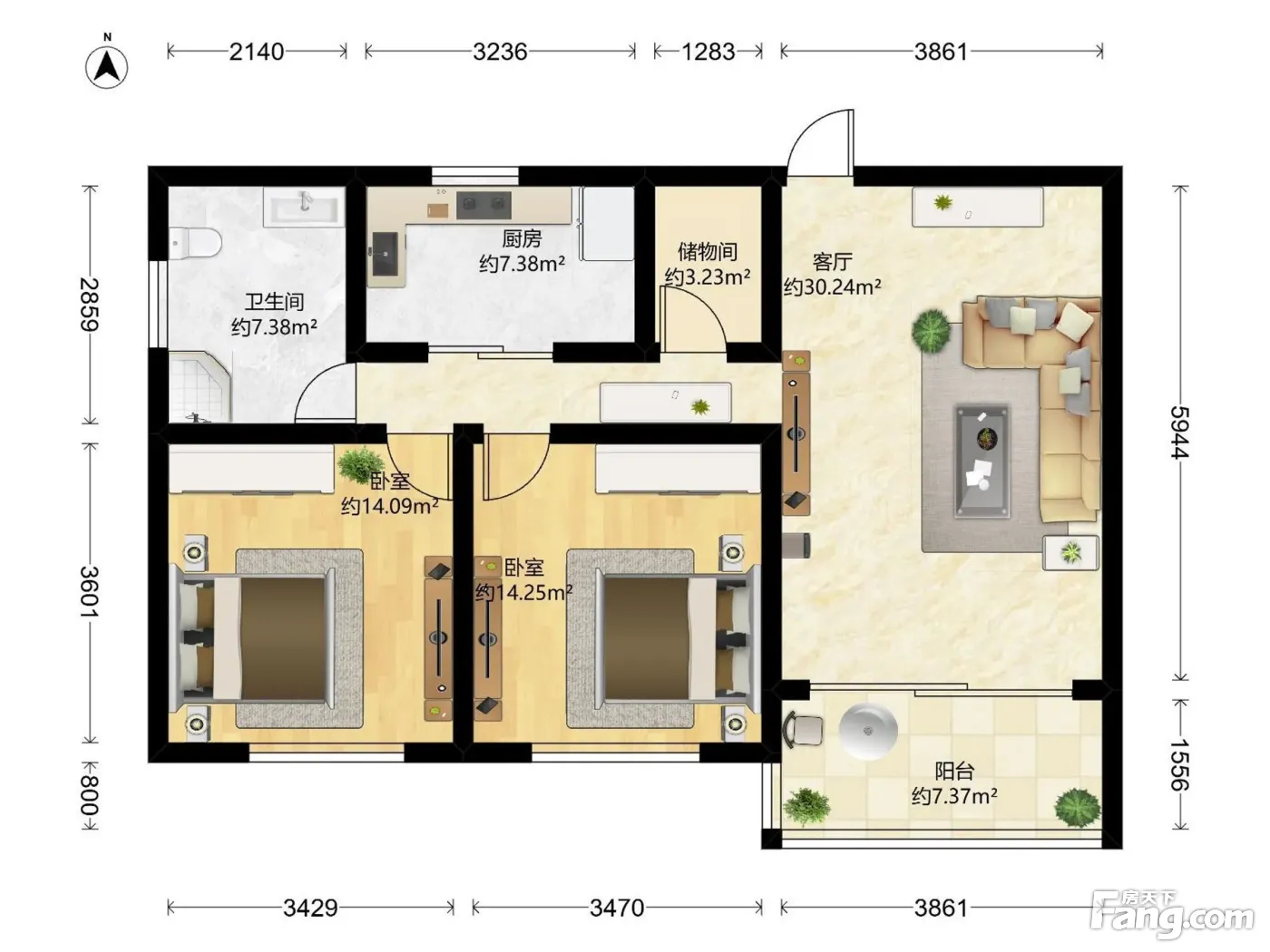2室2厅1卫