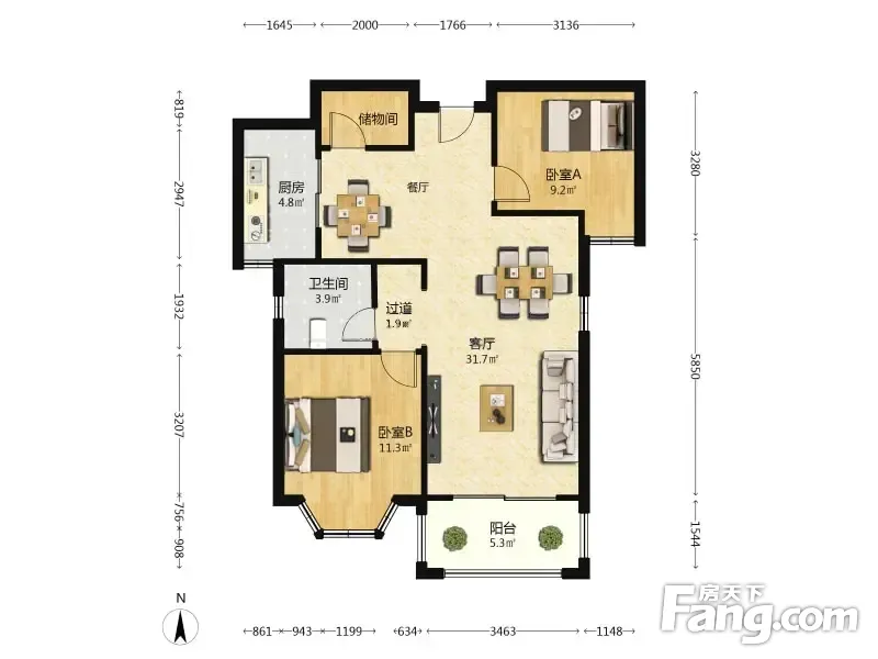 ①格局:南北朝向,我亲自看的房子,图片也是现场拍的图片。 ②户型方正,分布合理,使用率高,没有浪费面积。 ③通透性强,明厨明卫,装修很温馨。 ④中间楼层,各个年龄段都适合。。