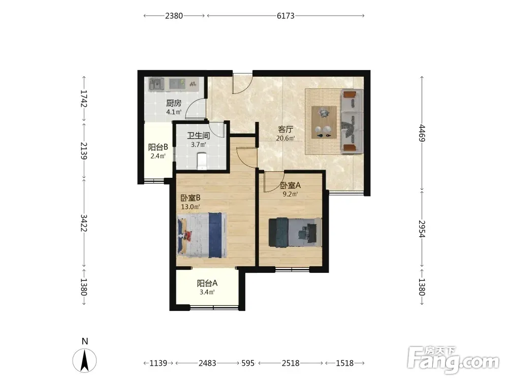 户型齐全,主打户型方正,明卫,客厅朝南,双阳台二居