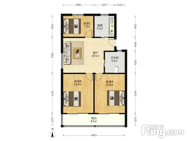 3室2厅1卫
