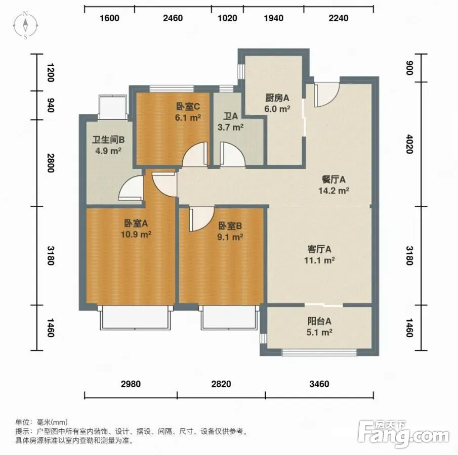 户型齐全,主打南北通透,全明格局,户型方正三居